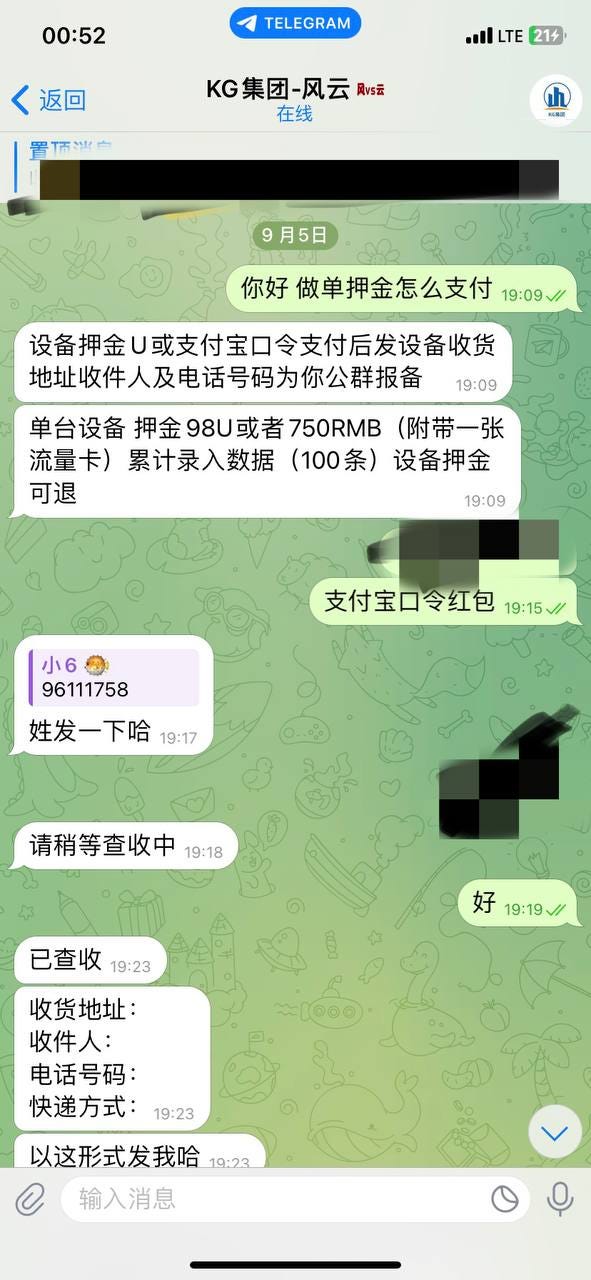 I can't remember which group I saw the project of looking for people to be agents in, so I joined the public group. I didn't think about it after joining. After three months, I saw that there were people doing it in the public group. I haven't had any projects to do recently, so I thought about giving it a try. The project content is to shoot the merchant code, the merchant store name and phone number, as well as the vehicle frame number, phone number, license plate and other car owner information for promoting gambling. The cost of one picture ranges from 80 to 100 yuan. You need to use their equipment to collect data. The equipment deposit is 750 yuan. You can get the equipment deposit back after taking 100 pictures. As a result, within a few hours after I paid the money, they started to talk about what membership I had to open to use the equipment. At this time, I felt something was wrong and went to check the group, but found that it could not be verified. The scammer kept quibbling, saying that this was an offline promotion project. The group could not be verified online, and the screenshot could not be taken in the fake public group. Beware of scammers. I hope his whole family will die tomorrow.