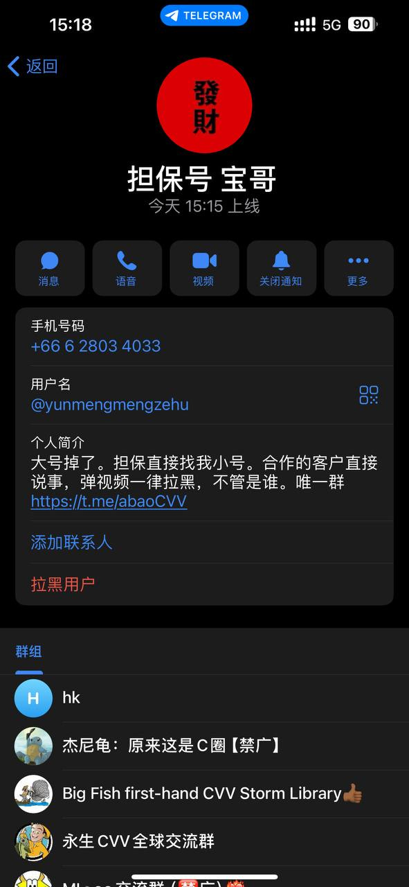 NEW REPORT #3703Oralce ListFeb 18, 2025Share Dehua issued an Asian CVV and said Brother Bao would guarantee it. First, a fake group of 2,500+ people was created, and then this fake group owner was asked to guarantee it. After receiving a u, the group was deleted and the avatar name was changed